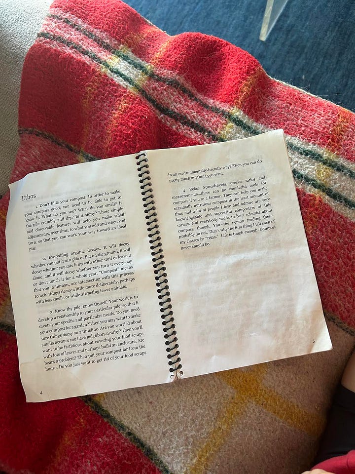 Getting this book published has been an unbelievable journey across the last four (!!) years, something that I never could have guessed would happen when I first sat down and stitched together the original “Compost This Book,” across a span of two weeks, as a take-home resource for students of my composting workshops. My friend Larry helped me use InDesign to format it for printing, and I made copies at my local copy shop.