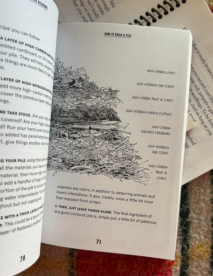 I wrote this book to empower the reader to teach themselves how to compost, to learn-by-doing, to get their hands properly in the EARTH, and to develop a newfound relationship to what it means to care …for oneself, one’s community of humans and non-humans alike, for earth, for all. (Truthfully, this feels much more urgent of a need today than it did when I started.)